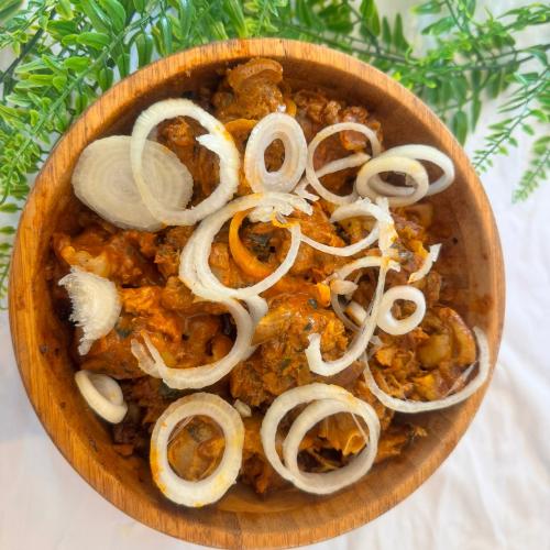 Isi Ewu is a cherished Nigerian delicacy renowned for its rich flavors and hearty nature. This traditional goat head soup is prepared by simmering tender goat meat in a flavorful blend of spices, including onions, pepper, and locust beans. Often enjoyed with a generous amount of palm oil, Isi Ewu boasts a warm, comforting broth that tantalizes the taste buds. Typically served at celebrations and family gatherings, this dish exemplifies the essence of Nigerian hospitality and culinary heritage, making it a favorite for those seeking a satisfying and authentic meal. Whether paired with pounded yam or enjoyed on its own, Isi Ewu is a true celebration of flavors.